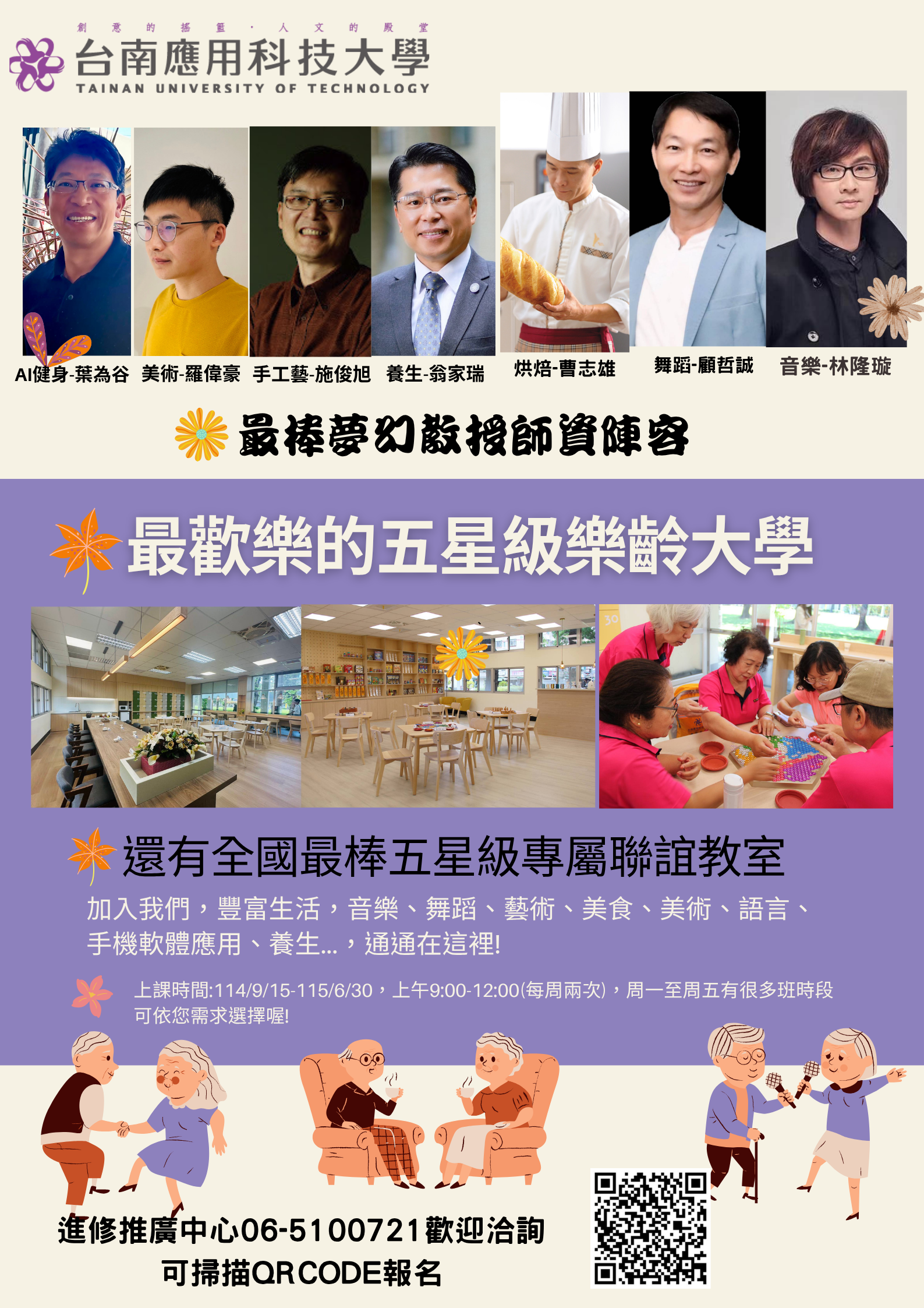 台南應用科技大學 樂齡大學 ─🌟🌟114學年度熱烈招生中!!!🌟🌟