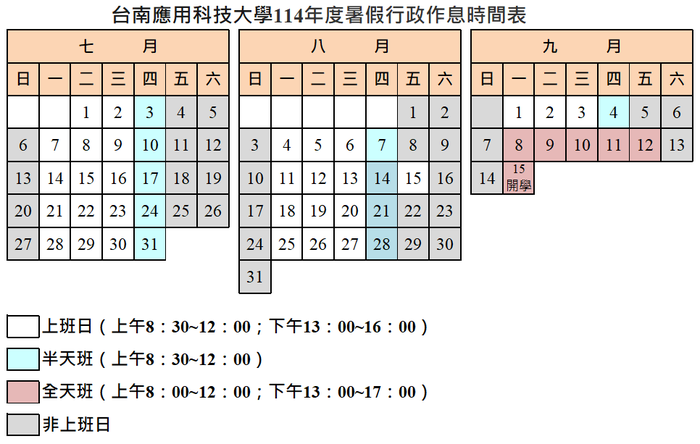 三、暑假行政作息時間表請詳閱下方行事曆。